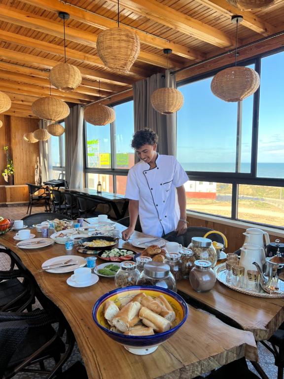 Choose a double or twin setup in a bright room with boho décor, private terrace and pool views, walk-in shower, Wi-Fi, and in-room safe a serene base close to Imsouane’s waves.